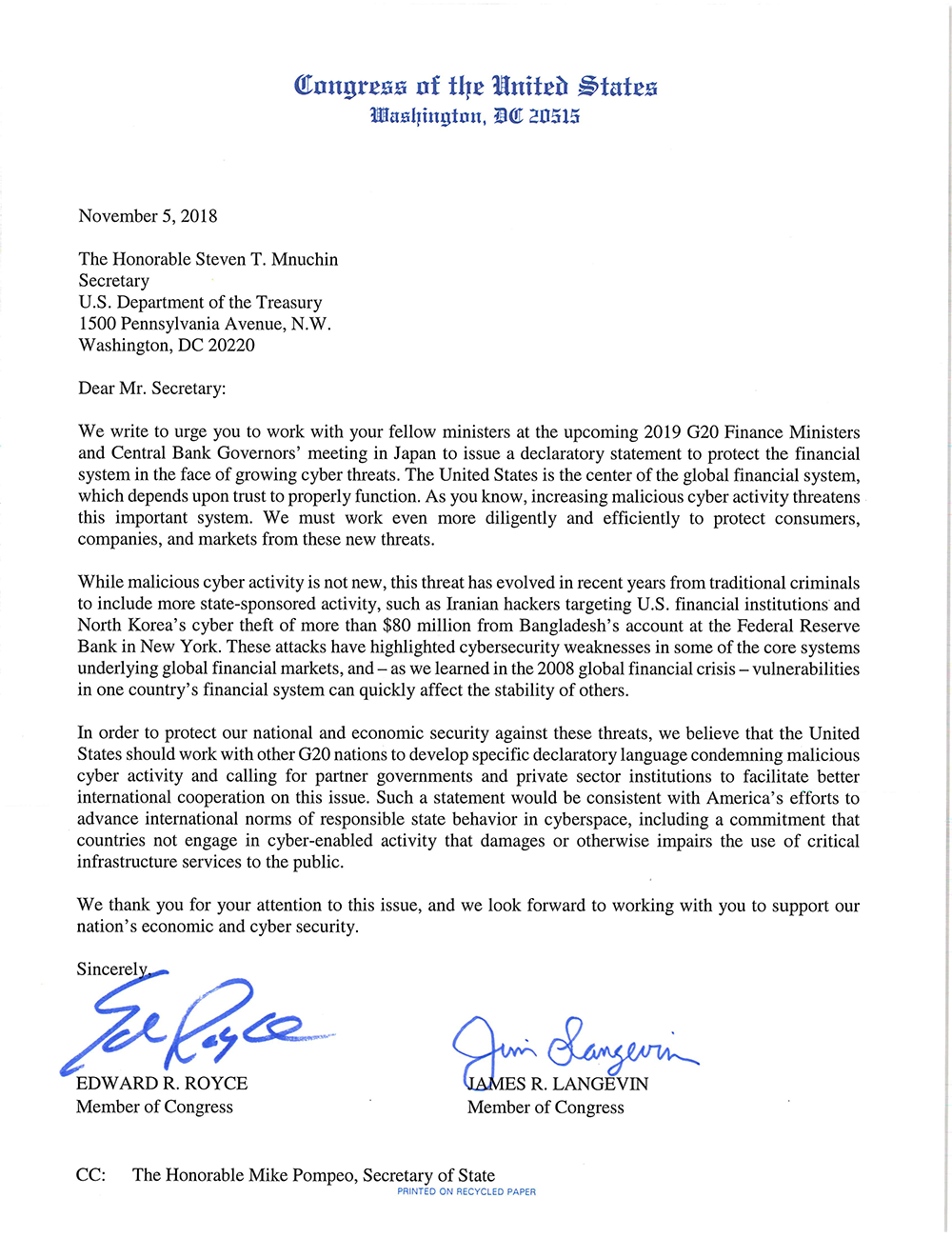 This report is the result of that project and offers a vision for how the international community could better protect the financial system against cyber threats. The recommendations are designed to inform the deliberations among the G20, the G7, relevant standard-setting bodies as well as the Annual Meeting of the World Economic Forum and the Munich Security Conference.